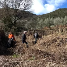 BB Teamtage: Da gibt es eine Menge "aufzuräumen"! Scheinbar gibt es über 300 Olivenbäume. Dazwischen wachsen und wuchern Farne und Brombeerdornen. Bevor die Bäume beschnitten werden können, müssen die Wege und Terrassen in Ordnung gebracht werden.